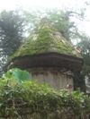 そんな景色を眺めながら山道を下っていくと、ちょっと不思議なとんがり屋根の小屋を発見しました。