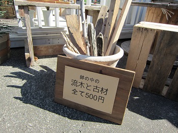 コレ、気になっていたんですよね・・・こちらのお店は、流木•古材•廃材などの