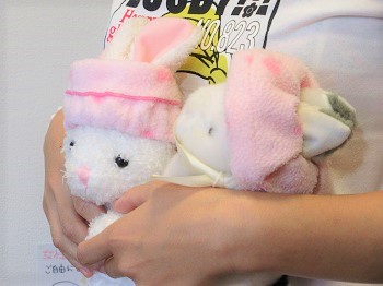 粘土細工のうさぎさんを手に「えっ、このうさぎが店長なの?」
