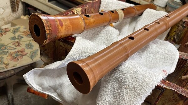 製作した尺八も...(左:竹、右:ABS樹脂)
